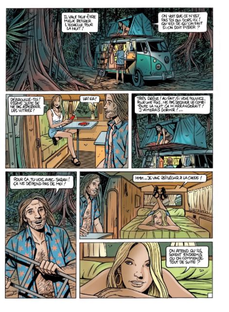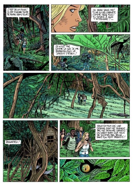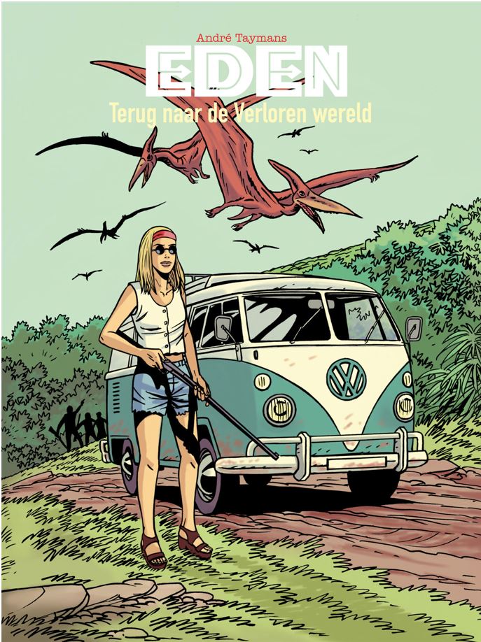 Na zijn hitserie “Caroline Baldwin” gaat Taymans verder met een nieuwe reeks – dit is het eerste deel van een drieluik. Softcover, 48 pagina’s - € 8,99 De Britse hippie Cathy leest de dagboeken van haar grootvader en besluit op zoek te gaan naar de verloren wereld, waar Sir Arthur Conan Doyle nog dat bekende boek over schreef. Maar eenmaal in Zuid-Amerika is niets zoals het lijkt… Ze hadden gedroomd van de hemel op aarde... Ze zullen de hel kennen! 1970. Kathy Malone, de kleindochter van journalist Edward Malone die professor Challenger had vergezeld bij de ontdekking van de verloren wereld, gaat op zoek naar deze beroemde wereld. Ze kreeg de notitieboekjes van haar grootvader te pakken waarin hij alles beschreef wat hij had meegemaakt. Ze vertrekt met een stel feesthippies op zoek naar Eden op aarde, vastbesloten om daar een gemeenschap te stichten, ver van het tumult van de consumptiemaatschappij. Maar Kathy, net afgestudeerd in de paleontologie, waakt ervoor om niet te praten over prehistorische horloges, dinosaurussen, allosauriërs en andere pterosauriërs die in de aantekeningen van haar grootvader worden beschreven. De ontdekking van zulke dieren die de Graal vormen voor elke zichzelf respecterende paleontoloog! Alle kleine band (ze zijn zes, drie jongens, drie meisjes) ontmoeten elkaar in Rio de Janeiro voor het grote vertrek. Ze gaan aan boord van twee Volkswagen-busjes voor een reis van drie weken door het platteland en vervolgens door de jungle.