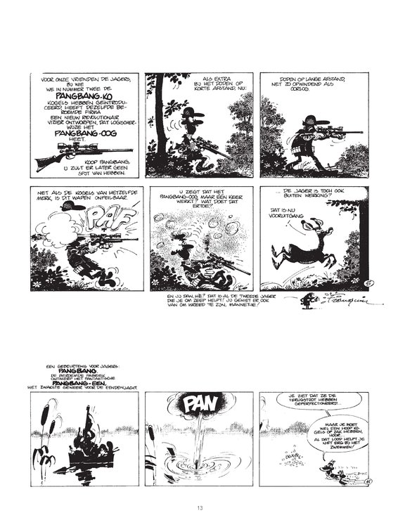 André Franquin had de stripwereld al veroverd met Robbedoes en Kwabbernoot, de Marsupilami en Guust Flater toen hij in 1977, tijdens een iets somberder periode uit zijn leven, samen met Yvan Delporte Zwartkijken creëerde voor Le Trombone Illustré, de 'vrijgevochten' bijlage van het weekblad Spirou. Het zijn gitzwarte gags die Franquins satirische kijk op de mensheid weergaloos weten te vatten. André Franquin: 'Zwartkijken komt weliswaar voort uit een neiging tot depressie maar die is lang niet dodelijk. Het blijven tenslotte gags om je aan het lachen te brengen, toch?' Legendarisch gagstrip van André Franquin, voor velen zijn magnum opus. Gitzwarte humor met zwart geïnkte personage die enkel bestaan uit silhouetten. Speciale heruitgave met extra dossier met een interview van Franquin en twee onuitgegeven gags.