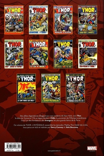 Voici venir le Ragnarok ! Quand Odin envoie Thor en mission, Loki libère Mangog, le monstre alimenté par la colère et la haine d'un milliard d'êtres ! Une aventure épique qui pourrait bien coûter la vie au Père de Tout. Ce n'est que le début d'un album riche en moments forts ! Nous poursuivons la série d'INTEGRALES consacrées à Thor avec la suite du séjour de Gerry Conway et John Buscema sur la série, méconnu en France (la dernière publication des épisodes présentés ici date de 1981) et pourtant essentiel. Une collaboration qui se poursuivra jusqu'en 1974 !