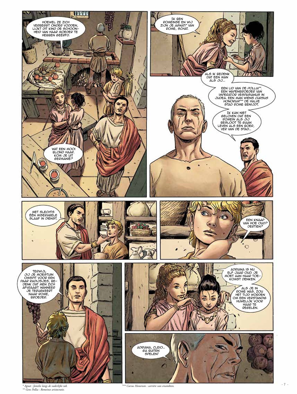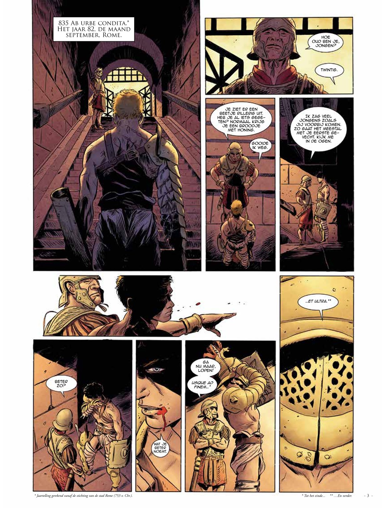In 79 na Christus ontsnappen Adriana Pollia en haar slaaf Cleio op wonderbaarlijke wijze aan de toorn van de Vesuvius. Maar wanneer ze worden opgevangen door Adriana’s oom, wordt Cleio op brute wijze afgetuigd, waardoor hij voor dood achterblijft. Adriana heeft geen andere keuze dan haar lot te volgen en een oude senator te trouwen. Maar op de dag dat ze in het Colosseum getuige is van het debuut van een jonge gladiator zal het verleden haar inhalen want in hem herkent ze haar jeugdliefde... Thracië Tekst: Trifolgi 1001 Nacht, Meerminnen en vikingen Tekeningen: Celestini 1001 nacht