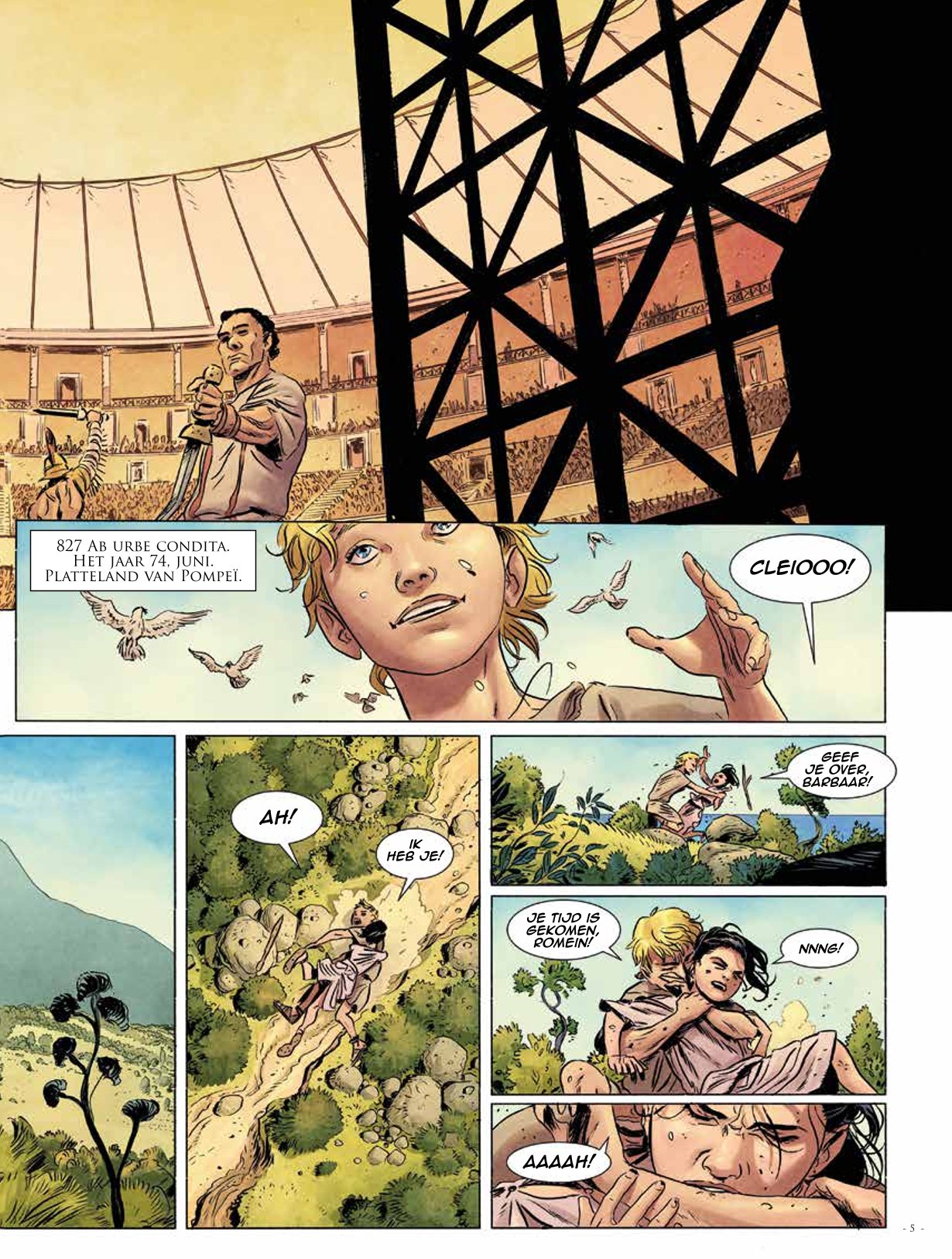 In 79 na Christus ontsnappen Adriana Pollia en haar slaaf Cleio op wonderbaarlijke wijze aan de toorn van de Vesuvius. Maar wanneer ze worden opgevangen door Adriana’s oom, wordt Cleio op brute wijze afgetuigd, waardoor hij voor dood achterblijft. Adriana heeft geen andere keuze dan haar lot te volgen en een oude senator te trouwen. Maar op de dag dat ze in het Colosseum getuige is van het debuut van een jonge gladiator zal het verleden haar inhalen want in hem herkent ze haar jeugdliefde... Thracië Tekst: Trifolgi 1001 Nacht, Meerminnen en vikingen Tekeningen: Celestini 1001 nacht