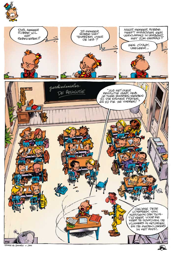 Schalks, stout, nieuwsgierig en opstandig ... dat zijn de belangrijkste eigenschappen die Tome en Janry de kleine Robbe ook deze keer toedichten. Het baasje moet tenslotte zichzelf blijven. In het traditionele format van paginagags en een langer verhaal (van zes pagina's) is geen onderwerp te gek om de revue te passeren in een serie die door vele fans wordt beschouwd als de ultieme humorreeks. En scenarist Tome zou zichzelf geweld aan doen als hij niet probeerde om via zijn strips de wereld een heel klein beetje te verbeteren. Deze keer geeft hij alle bankiers van de wereld een flinke trap voor hun ... Tome en Janry introduceren een nieuw personage: Odoklonjo, de nieuwe assistent van vader Angelusse.