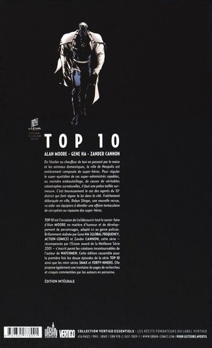 De l'écolier au chauffeur de taxi en passant par le maire et les animaux domestiques, la ville de Neopolis est entièrement composée de super-héros. Pour réguler le super-quotidien de ces super-administrés capables, ou moindre embouteillage, de causer de véritables catastrophes surnaturelles, il faut une police taillée sur-mesure. C'est heureusement le cas des agents du 10e district qui font régner la loi dans la cité. Fraîchement débarquée en ville, Robyn Slinger, une nouvelle recrue, va aider ses équipiers à démêler une affaire tentaculaire de corruption au royaume des super-héros. TOP 10 est l'occasion de (re)découvrir tout le savoir-faire d'Alan Moore en matière d'humour et de développement de personnages, adapté ici au genre policier. Brillamment réalisée par Gene Ha (Global Frequency, Action Comics) et Zander Cannon, cette série - récompensée par l'Eisner award de la Meilleure Série 2001 - s'inscrit parmi les créations incontournables de l'auteur de Watchmen. Cette édition rassemble pour la première fois les douze épisodes de la série TOP 10 ainsi que les mini-séries Smax et Forty-Niners. Elle propose également une trentaine de pages de recherches et croquis commentées par les auteurs en personne.