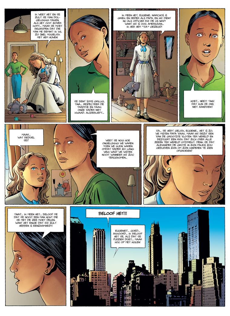 Ze heten Aristoteles Onassis en Stavros Niarchos. Deze onmetelijk rijke en genadeloze concurrenten zijn sinds de jaren 1950 de twee grootste reders ter wereld. Even rijk als ze machtig zijn, kan niets ze tegenhouden op hun weg naar de macht. Niets! Tot ze de dochters van hun directe tegenstander huwen. Tina en Eugenie leven aan de zijde van Onassis en Niarchos een uitzonderlijk en tragisch leven. Een leven bestaande uit passies en verraad met als achtergrond het bedwelmende leven van de jetset, de politieke spelletjes en de allesverterende ambitie van hun echtgenoten ...