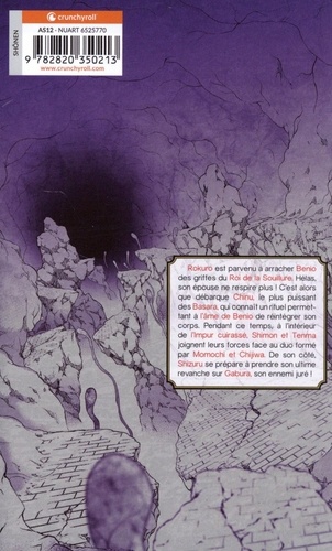 Rokuro est parvenu à arracher Benio des griffes du Roi de la Souillure. Hélas, son épouse ne respire plus ! C'est alors que débarque Chinu, le plus puissant des Basara, qui connaît un rituel permet- tant à l'âme de Benio de réintégrer son corps. Pendant ce temps, à l'intérieur de l'Impur cuirassé, Shimon et Tenma joignent leurs forces face au duo formé par Momochi et Chijiwa. De son côté, Shizuru se prépare à prendre son ultime revanche sur Gabura, son ennemi juré !