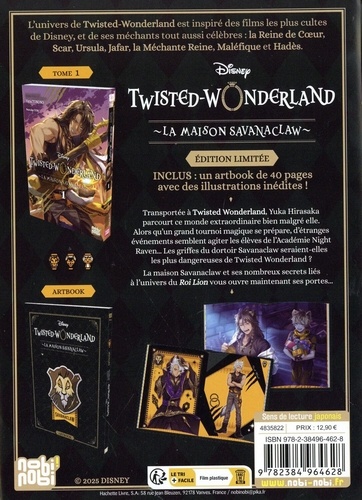 L'univers de Twisted-Wonderland est inspiré des films les plus cultes de Disney, et de ses méchants tout aussi célèbres : la Reine de Coeur, Scar, Ursula, Jafar, la Méchante Reine, Maléfique et Hadès. Transportée à Twisted Wonderland, Yuka Hirasaka parcourt ce monde extraordinaire bien malgré elle. Alors qu'un grand tournoi magique se prépare, d'étranges événements semblent agiter les élèves de l'Académie Night Raven... Les griffes du dortoir Savanaclaw seraient-elles les plus dangereuses de Twisted Wonderland ? La maison Savanaclaw et ses nombreux secrets liés à l'univers du Roi Lion vous ouvre maintenant ses portes...