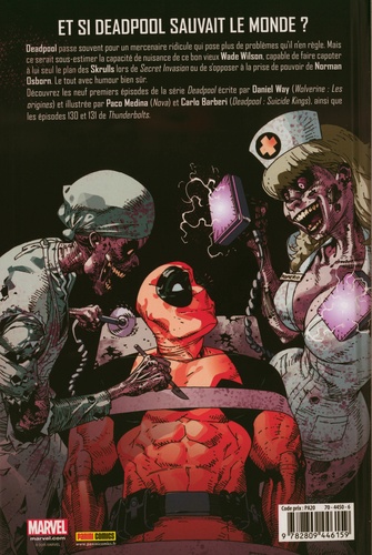 Deadpool passe souvent pour un mercenaire ridicule qui pose plus de problèmes qu'il n'en règle. Mais ce serait sous-estimer la capacité de nuisance de ce bon vieux Wade Wilson, capable de faire capoter à lui seul le plan des Skrulls lors de Secret Invasion ou de s'opposer à la prise de pouvoir de Norman Dsborn. Le tout avec humour bien sûr. Découvrez les neuf premiers épisodes de la série Deadpool écrite par Daniel Way (hiver/ne : Les origines) et illustrée par Pau Medina (Nova) et Carlu Barberi (Deadpool : Suicide Kings), ainsi que les épisodes 13 D et 131 de Thunderbolts.