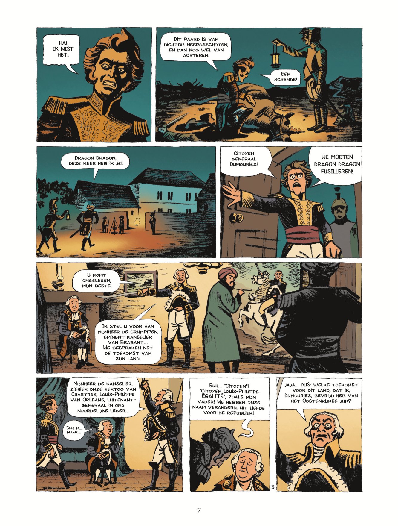 De ruiterlijke confessies van Dragon Dragon. Een bijzondere nieuwe reeks geschreven door Nicolas Juncker ( die ook Alleen in Berlijn tekende en schreef ) maar deze keer met Simon Spruyt ( De Tamboer van Borodino) als tekenaar. Het verhaal van een laffe soldaat, die alle fouten bezit, hij steelt is seksueel geobsedeerd, te laf om te vechten, zou zijn beste vrienden verraden, enz… geen taboes staan hem in de weg. Deze avonturen spelen zich af in een historische context, in dit eerste deel is de achtergrond de slag om Valmy in 1792. Dragon komt van een “ elite korps” die snel moesten kunnen optreden en de protestanten moest terroriseren in het zuiden van Frankrijk. Het is de start van een nieuwe serie waarvan deel 3 al geschreven is en waarvan deel 2 zich in België gaat afspelen. Deel 3 gaat dan terug naar Frankrijk met de komst van Napoleon. Voor het personage haalde Simon Spruyt zijn inspiratie bij een Homoseksuele Porno acteur uit de jaren 70 met de typische snor en kapsel. Simon Spruyt tekent nogal altijd met Chinese inkt alhoewel de inkleuringen digitaal gebeuren. Het wordt in ieder geval een bijzondere originele reeks. inhoud De Franse Republiek heeft net haar Belgische buren verlost van het Oostenrijkse juk. Danton en dragon Dragon zien hun kans schoon om de meest prestigieuze kunstwerken van de Lage Landen te stelen. Maar hoe maak je als eersteklas lafaard kans om fortuin te maken tussen de Belgen die in opstand komen en de Oostenrijkers die in de tegenaanval gaan? Hoe dan ook, hij mag zijn hoofd niet verliezen, in tegenstelling tot bepaalde Parijzenaars op datzelfde ogenblik. Pierre-Marie Dragon is snel van begrip, een bedreven zwaardvechter en een bekwaam ruiter: kortom, een echte ‘dragon’. Hij heeft alles om een held van de Franse Revolutie te worden. Zijn naam zul je echter niet in de schoolboeken aantreffen, want de enige avonturen die dragon Dragon actief opzoekt, zijn van zuiver seksuele aard. Hij is niet geïnteresseerd in de eerbewijzen van grote veldslagen en verkiest geld boven medailles. Helaas voor hem wordt Grote Geschiedenis vaak geschreven door kleine mensen...