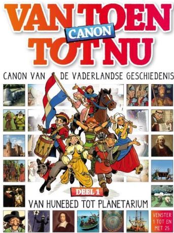 Venster 1 t/m 25 De vaderlandse geschiedenis komt tot leven. De VAN TOEN TOT NU CANON gaat over de ontwikkeling van Nederland. Het is een verzameling van vijftig belangrijke gebeurtenissen, personen en voorwerpen. Ze hebben ons land gemaakt zoals het nu is. Van de hunebedden, via Willem van Oranje naar Europa. Niet met een saaie opsomming van feiten en jaartallen, maar met korte, informatieve teksten en heel veel striptekeningen en unieke foto's. En bij ieder onderwerp een persoonlijk verhaal van een kind uit de tijd. Zo komt de vaderlandse geschiedenis voor jong en oud echt tot leven.