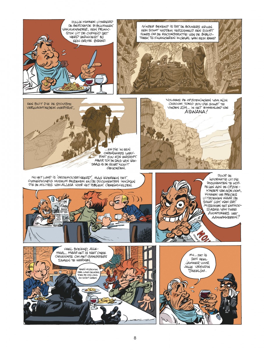 Met de dood van de dictator eindigt de verschrikkelijke burgeroorlog in Aswana. De wereld herademt. Vooral Don Contralto, een maffioso die veroordeeld werd tot een gevangenisstraf van 634 jaar (door een spijtig misverstand, dat spreekt voor zich ...).Om de lange dagen te vullen die hij doorbrengt in een zwaar beveiligde gevangenis in New York heeft deze modelgevangene een nieuwe passie ontwikkeld: archeologie. Hij verslindt boeken, schuimt het internet af en bestudeert landkaarten ... Niet zonder resultaat. Op deze manier ontdekte hij al heel wat antieke schatten. En nu zou hij misschien wel eens de schat van Alexander de Grote gevonden kunnen hebben. In een ondergronds labyrint ergens in Aswana ... Nu de oorlog eindelijk voorbij is, vindt hij het hoog tijd om er een ploeg naartoe te sturen om deze schat die haar gelijke niet kent te zoeken. Hij doet beroep op Don Vito Cortizone, zijn neef die hem niets kan weigeren, om voor hem een avontuurlijk duo te vinden dat deze klus kan klaren. Met of zonder eekhoorn ... Dit is al het vierde avontuur van Robbedoes en Kwabbernoot van het duo Yoann en Vehlmann.