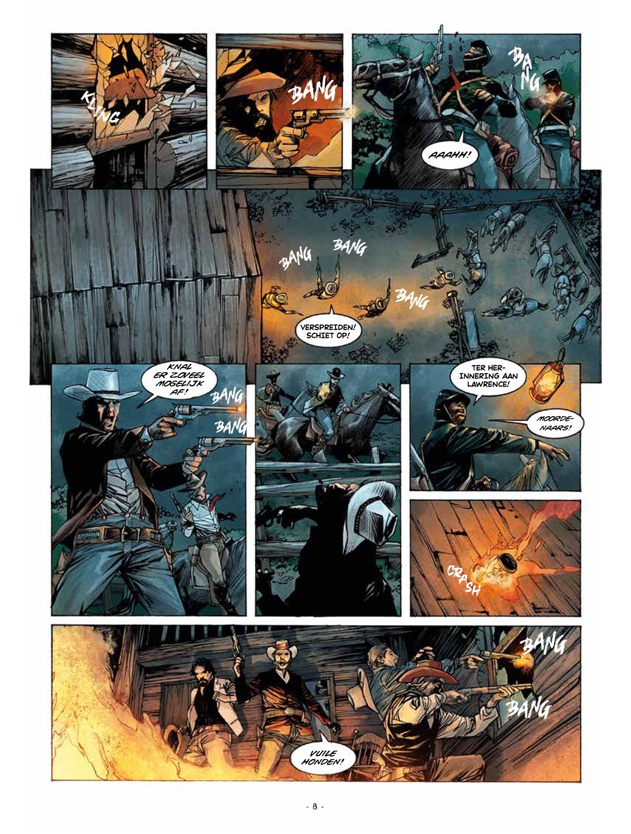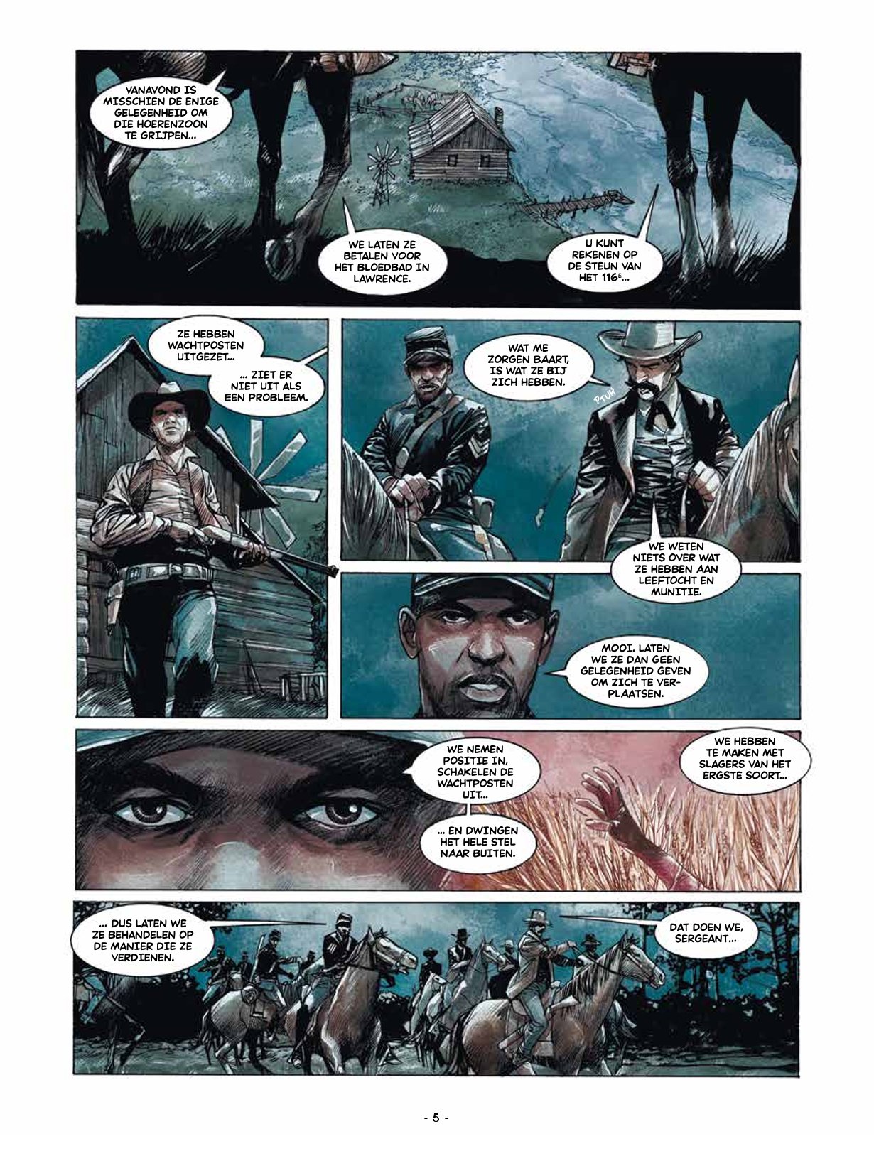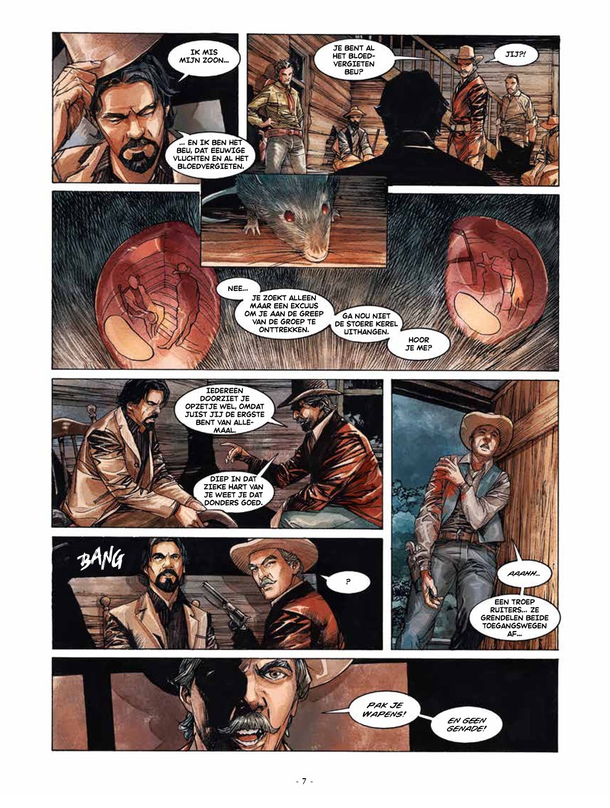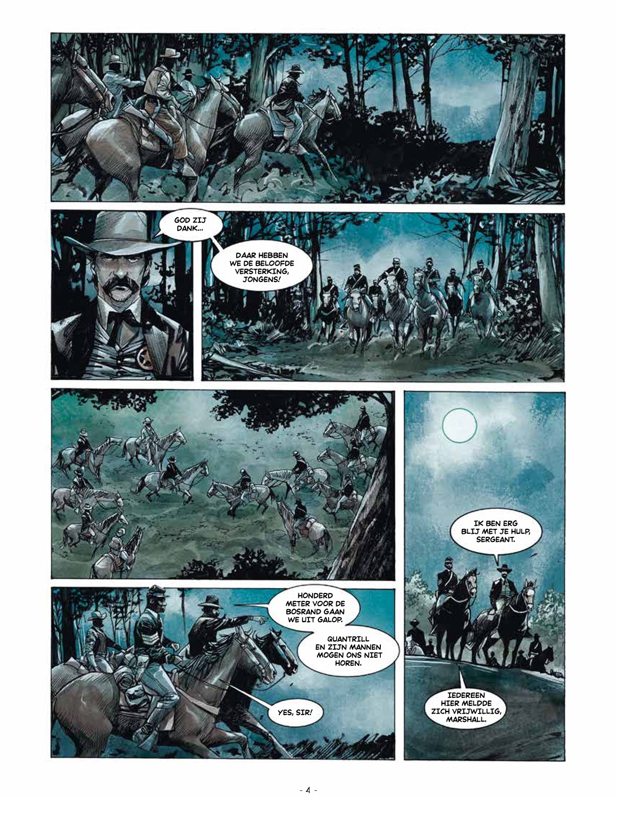 HIER BESTAAT OOK EEN EXCLUSIEVE STRIPWEBVERSIE VAN MET SPECIALE STOFOMSLAG EN EX LIBRIS GENUMMERD OP 75 EX Vergeet niet dat je zult sterven – stripwebversie Wanneer je ergste vijand je de beste overlevingskans biedt. Meadows, een zwarte yankee uit het noorden, en zijn vijand Blackwood, een confederatiesoldaat, vechten om te overleven in Kentucky net na de beëindiging van de Amerikaanse Burgeroorlog. Tijdens een rampzalige reis zullen ze al hun kennis en kunde moeten bundelen om menselijke tegenspoed en de bijzonder vijandige natuur het hoofd te bieden. Tussen haat en verlatenheid zullen ze geen andere keuze hebben dan hun wrok te overwinnen om te overleven. Maar hoe kunnen deze personages die constant op scherp staan ontsnappen aan de onveranderlijke cyclus van geweld? En hoe is het mogelijk om in zulke moeilijke omstandigheden vergeving en verlossing te vinden? Vergeet niet dat je zult sterven Tekst: Dobbs Het beest in de mens, Nicolas le Floch Tekeningen: Nicola Genzianella