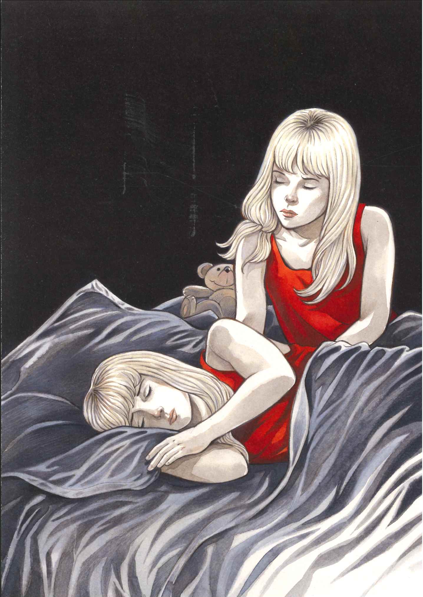 De prachtige, tedere ex libris van lieve, onschuldige tweelingzusjes stelt me gerust. En dan verwachten we familie om samen een prettig kerstfeest te vieren. Hoe erg kan een mens zich vergissen? De tweelingzussen Fanny en Tania hebben het niet getroffen met hun moeder, Cecilia. Heeft dat mens stemmingswisselingen! Als ze het niet op de tweeling gemunt heeft, kwelt ze zichzelf. Gelukkig zijn ze twee maanden per jaar veilig bij tante Pauline en oom Louis. Een topvakantie in Le Touquet. En toch zal een vreselijk familiegeheim komen bovendrijven. "Nog een gehandicapte erbij in huis." Deze zin doet ons nieuwsgierig verder lezen. Meer dan genoeg drama in dit album van Olivier Grenson (Niklos Koda, Voor het Ongeluk Geboren). Als je dan weet dat het scenario geschreven is door zijn echtgenote Sylvie Roge, kan je alleen maar hopen dat dit koppel snel eens een weekendje samen zal boeken.