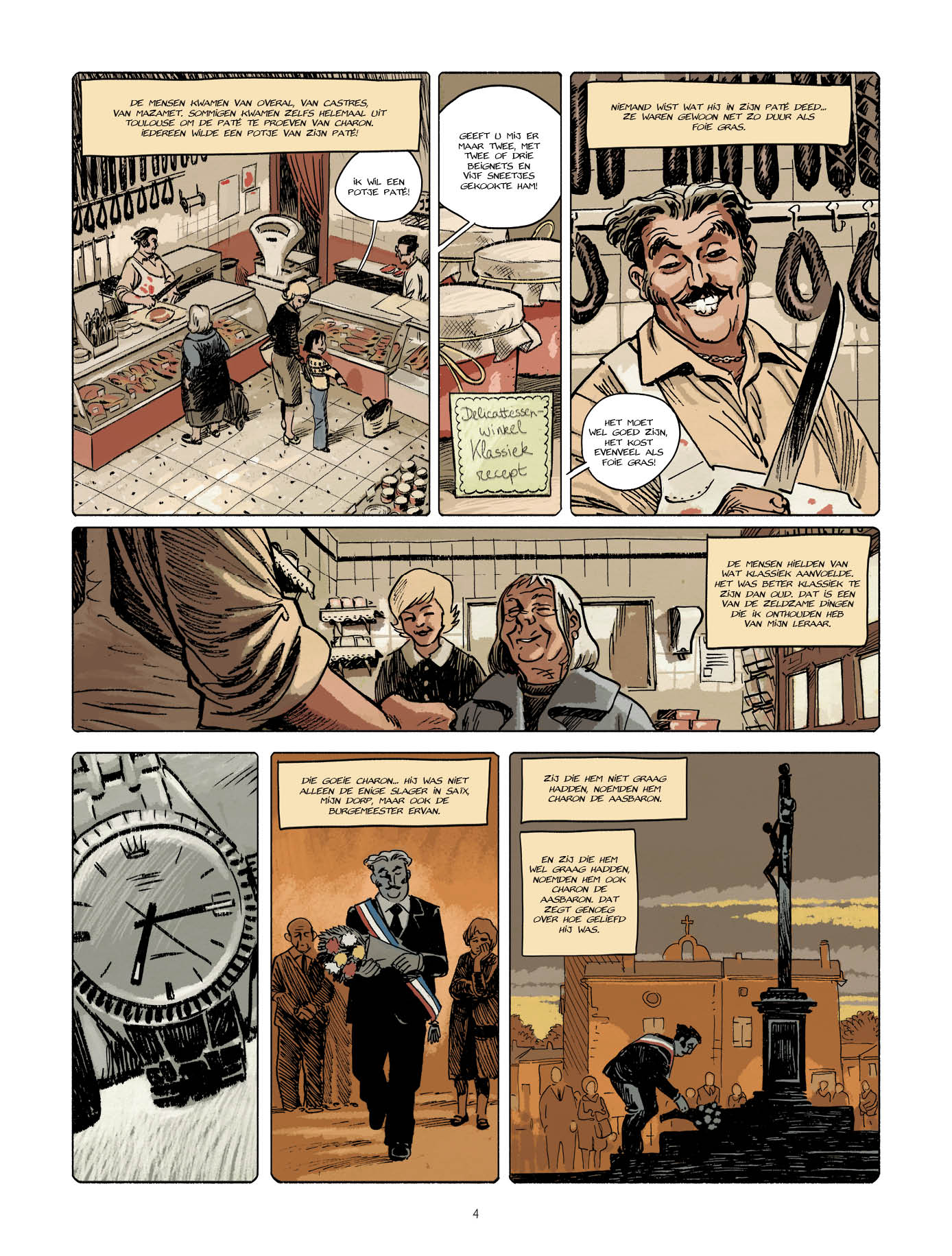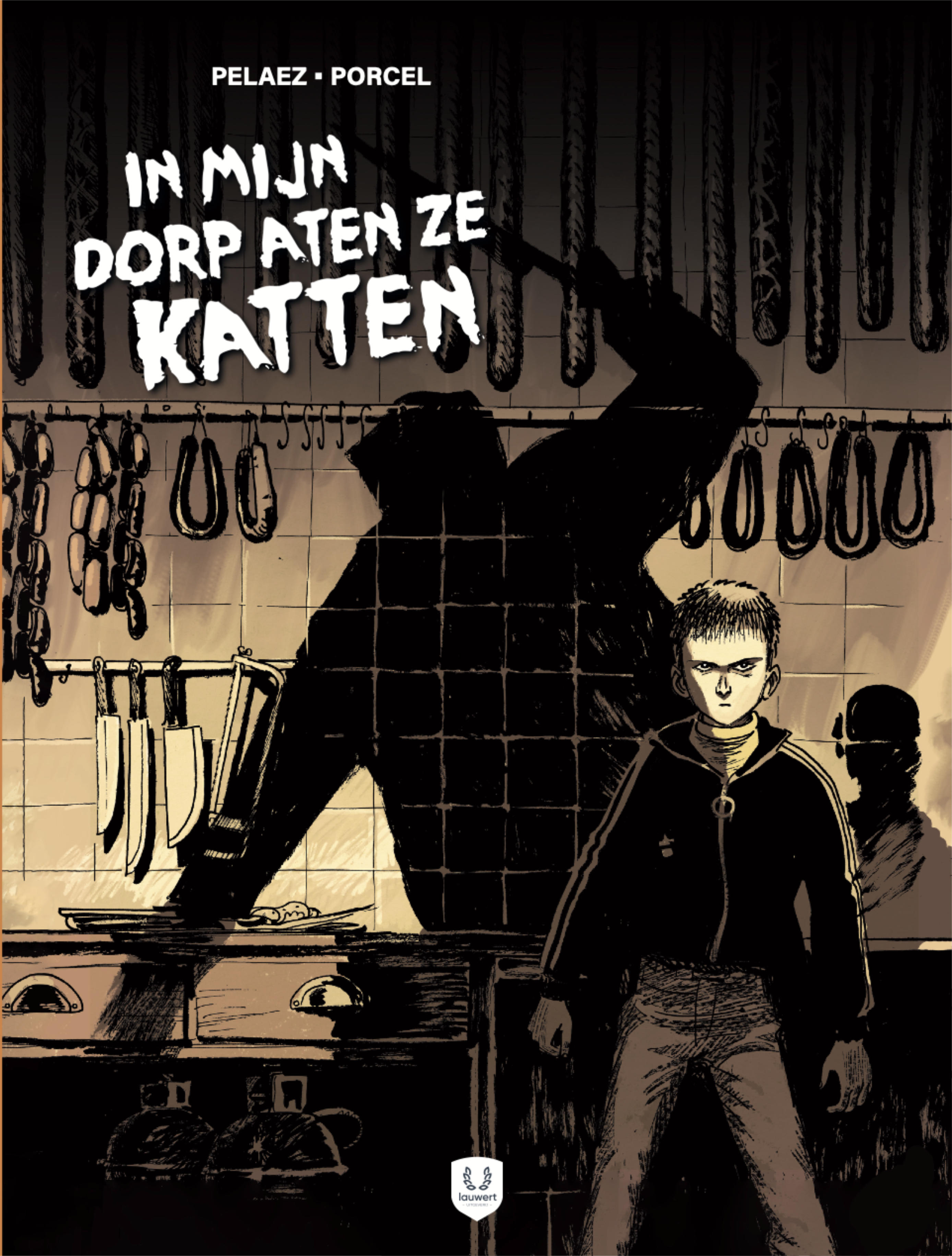In mijn dorp aten ze katten is een one shot graphic novel met een titel die meteen als een dreun binnenkomt. Nog voor je één pagina omslaat, suggereert de cover al waar het naartoe gaat: de donkere blik van een jongen en de schaduw van een slager die aan het werk is. Wie erg gehecht is aan katten, zal zich bij momenten ongemakkelijk voelen, al kiezen de makers eerder voor suggestie dan voor gratuit shockeffect.
