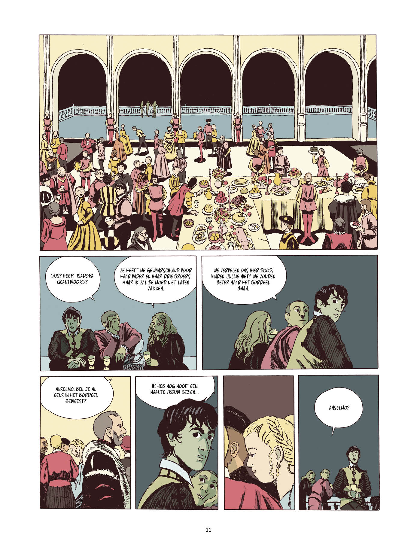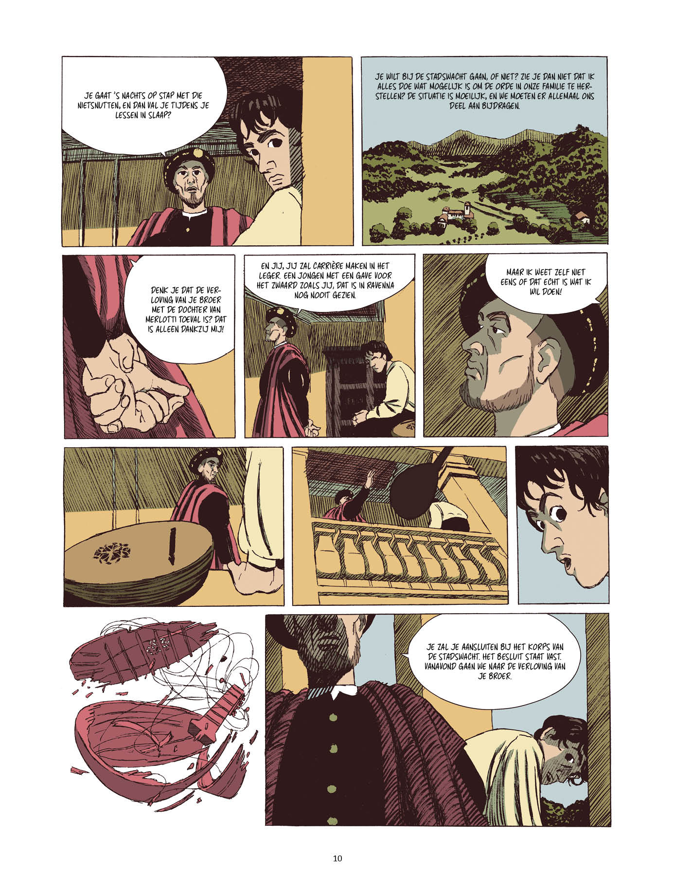 Ook visueel overtuigt het boek: het tekenwerk is zorgvuldig en expressief, met veel aandacht voor lichaamstaal, sfeer en detail. Het zestiende-eeuwse Italië wordt niet geromantiseerd, maar voelt tastbaar en ruw aan — een wereld waar schoonheid en wreedheid naast elkaar bestaan.
