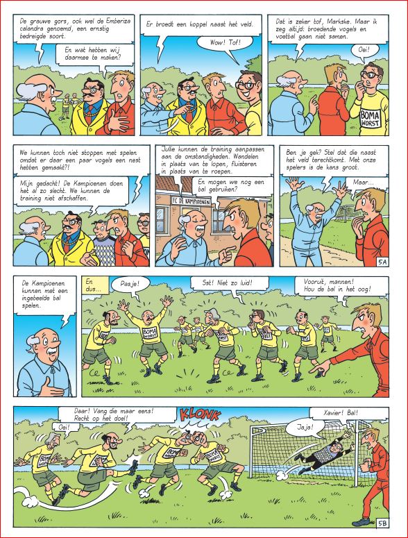Maurice koopt op een dag een bombardon en begint te oefenen op het instrument, tot ongenoegen van Pascale en de Kampioenen. Pascale raadt hem aan een andere hobby te zoeken. Tijdens een training van de Kampioenen ontdekt Maurice dat er een zeldzame vogel een nest gemaakt heeft aan de rand van het veld. Hij maant de Kampioenen aan om voortaan in alle stilte te oefenen, zonder bal, zolang de jonge vogeltjes het nest niet hebben verlaten. Vanaf dat moment verdiept Maurice zich in de ornithologie en is hij niet meer weg te slaan uit het Gemene Teutbroek, het natuurdomein van de gemeente. Tijdens een van zijn tochten ziet Maurice dat Fernand illegaal zit te vissen in de vijver van het domein. Fernand ziet er niet gezond uit. En er is meer aan de hand...