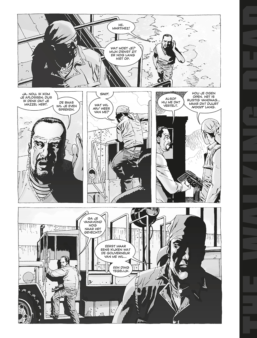 Rick, Michonne en Glenn worden nog altijd gevangen gehouden door 'de gouverneur', de charismatische leider van een kleine gemeenschap in Woodbury. Het wordt al snel duidelijk dat zijn gewelddadige neigingen een groot gevaar vormen voor Ricks gezin en de andere overlevenden die zijn achtergebleven in de verlaten gevangenis. Kunnen ze iedereen op tijd waarschuwen? Walking Dead behoort al jaren tot een van de grootste stripsuccessen in Amerika. Ieder nieuw boek staat steevast in de top-tien. Hollywood heeft het uitmuntende schrijfwerk van Robert Kirkman inmiddels ook ontdekt. De televisie-serie van The Walking Dead wordt uitgezonden op FOX.
