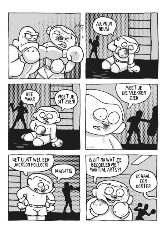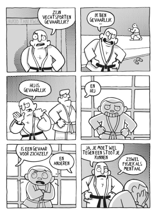 Wouter Van Ghysegem laat zijn cartoonkunsten los op de vechtsport, zelf beoefent Wouter Braziliaanse jiu-jitsu maar bespeelt alle vechtsporten in zijn eerste grappenbundel, “Way of the worm”.