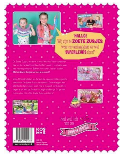 De Zoete Zusjes, wie kent ze niet? Het YouTube-kanaal staat boordevol met video’s waarin ze steeds weer iets nieuws proberen: bakken, knutselen, buiten spelen.. met de Zoete Zusjes verveel je je nooit! Voor dit boek hebben we de leukste, spannendste en gekste ideeën van De Zoete Zusjes verzameld. Ze verklappen het allerbeste recept, leren hoe je magisch zand maakt en dagen je uit met de Try Not To Laugh Challenge. Of ga naar buiten voor een echte Zoete Zusjes-picknick! Geschikt voor kinderen van 4 tot 8 jaar.