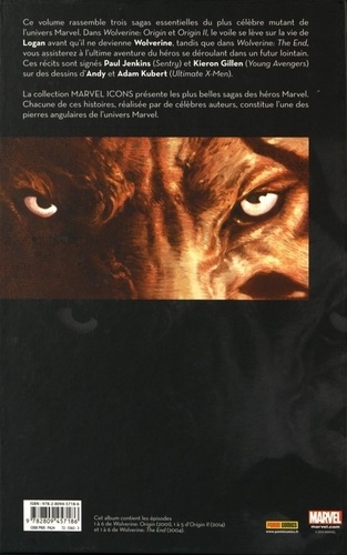Retrouvez trois récits essentiels du mutant griffu. "Origin" et "Origin II" reviennent sur la jeunesse de Logan, avant qu'il ne devienne Wolverine. "Wolverine : The End imagine la fin du héros, dans un futur lointain.