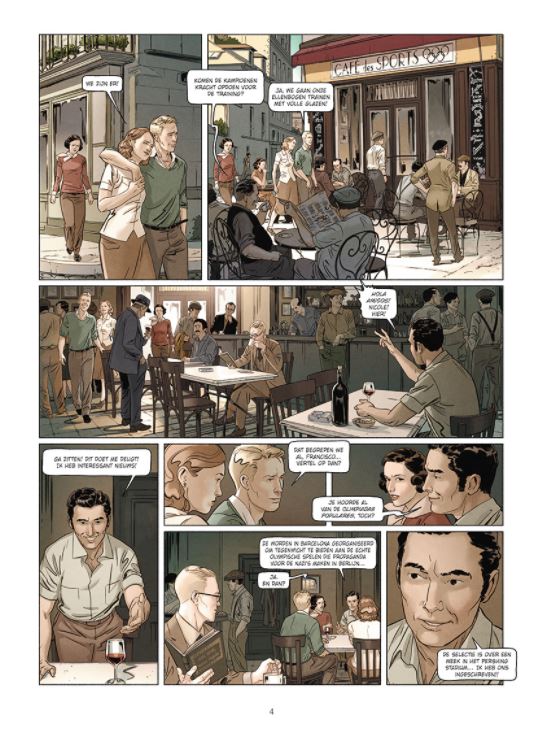 Op 18 juli 1936 stonden de populaire Olympische Spelen in Barcelona klaar om van start te gaan, toen plots de 'pronunciamiento' van Generaal Franco het hele land in de chaos stortte. De dag nadien weerklonken geweerschoten in de straten van de Catalaanse hoofdstad. De Spaanse burgeroorlog was begonnen... Van de atleten die vast komen te zitten in Barcelona kiezen zeven mannen en vrouwen ervoor de wapens op te nemen. De zeven hebben uiteenlopende nationaliteiten: Frans, Iers, Duits, Italiaans, Spaans, maar zijn verenigd door dezelfde idealen. Voor het leven, tot ter dood en... voor de liefde. Zeven Atleten is getekend door David Morancho (Sara Lone).