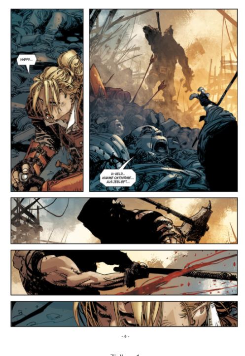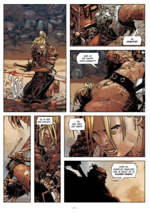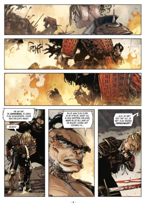 aanrader een pareltje voor de liefhebbers van avontuur en gevechtsporten! eerste deel van een reeks van 4!!!! samoerai strip uit Italië 'In de twee jaar voorafgaand aan de dag van mijn redding, beleefde ik de meest ongelooflijke avonturen die een platte- landsjongen ooit zou kunnen leven. Dat was voordat de hand van mijn grootva- der Herion me uit die hel scheurde...' Dit zijn de avonturen van Ian Aranill en zijn genadeloze gezelschap van huurlingen in een spannend, rauw en bloederig verhaal. De jonge Ian staat voor de onmenselijke realiteit van de plunderingen en overvallen die de komst van een leger vergezellen. Ian zal met zijn geweten moeten omgaan, terwijl om hem heen de wereld in een brandende haat lijkt te staan!
