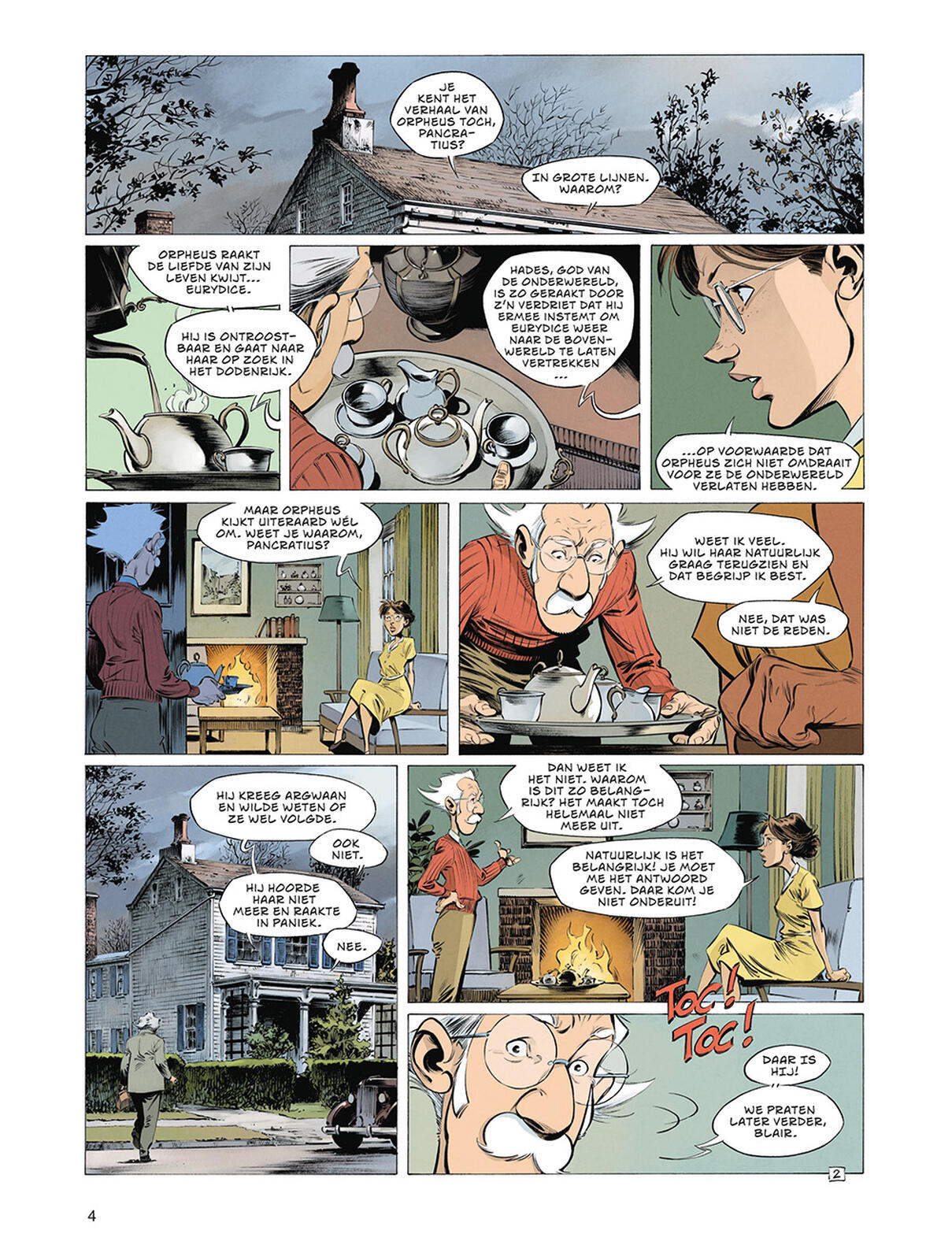 Blair, de veel te vroeg overleden geliefde van Pancratius, laat de lezers nog steeds niet los. In dit album duikt ze op in de gedachten van de professor, als een zachte echo die het zware leven van Pancratius iets luchtiger maakt. De subtiele verwijzing naar de Orpheusmythe, waarin de geliefde uit het dodenrijk wordt teruggehaald, fungeert als een mooie en betekenisvolle rode draad.